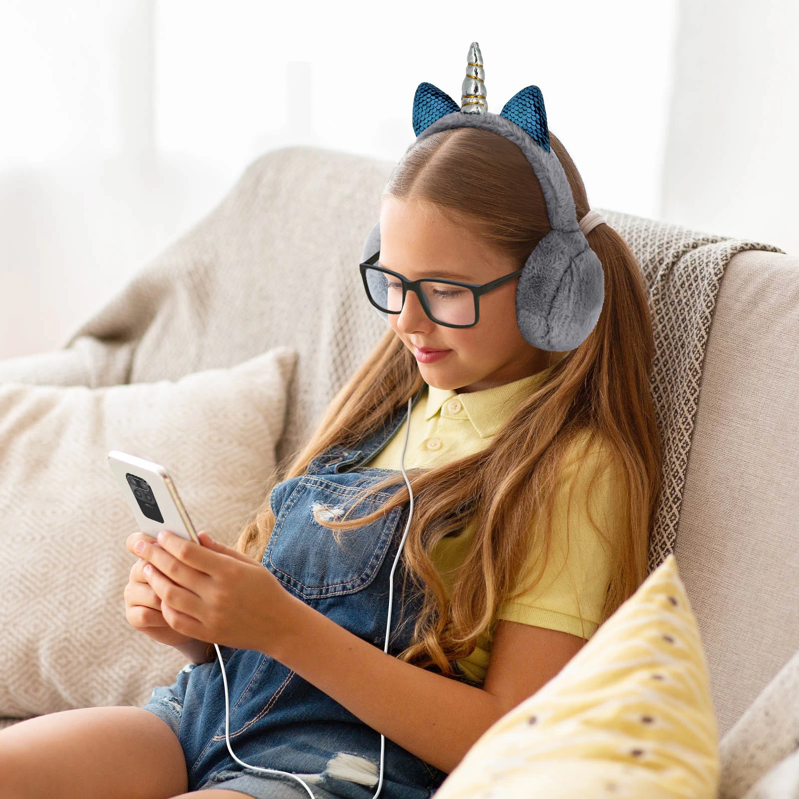 Casque audio Jack 3.5mm, avec Licorne et fourrure