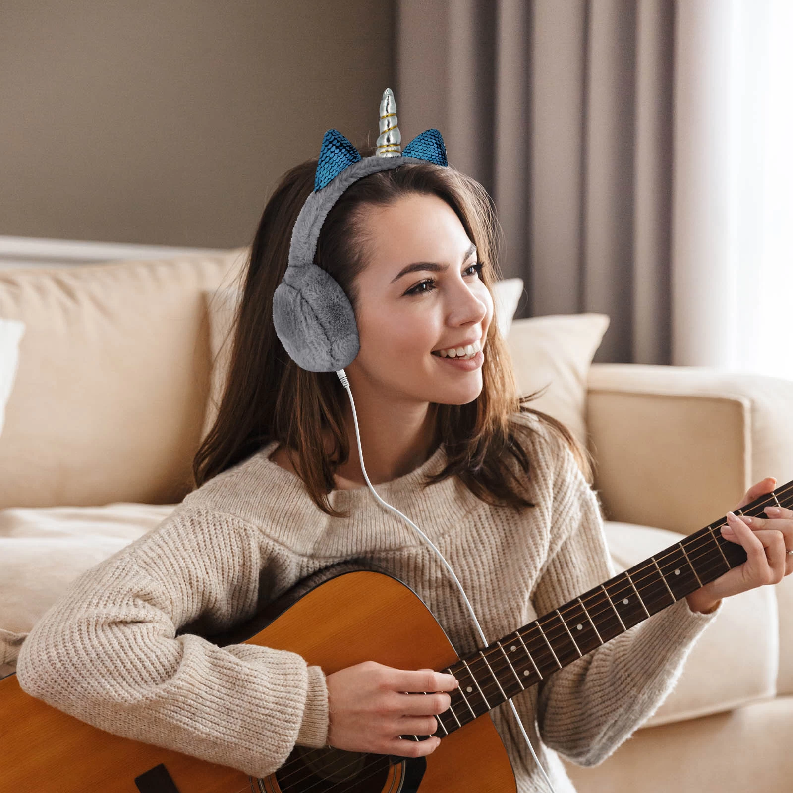 Craquez pour ce casque audio Jack 3.5mm gris, tendance et indispensable lorsque le froid s’installe. La présence d’une fourrure synthétique donne au casque la fonctionnalité de cache-oreilles. Finis donc les oreilles gelées tout en profitant de vos playlists ! La corne de licorne et les deux petites oreilles scintillantes apportent une touche magique et féerique.