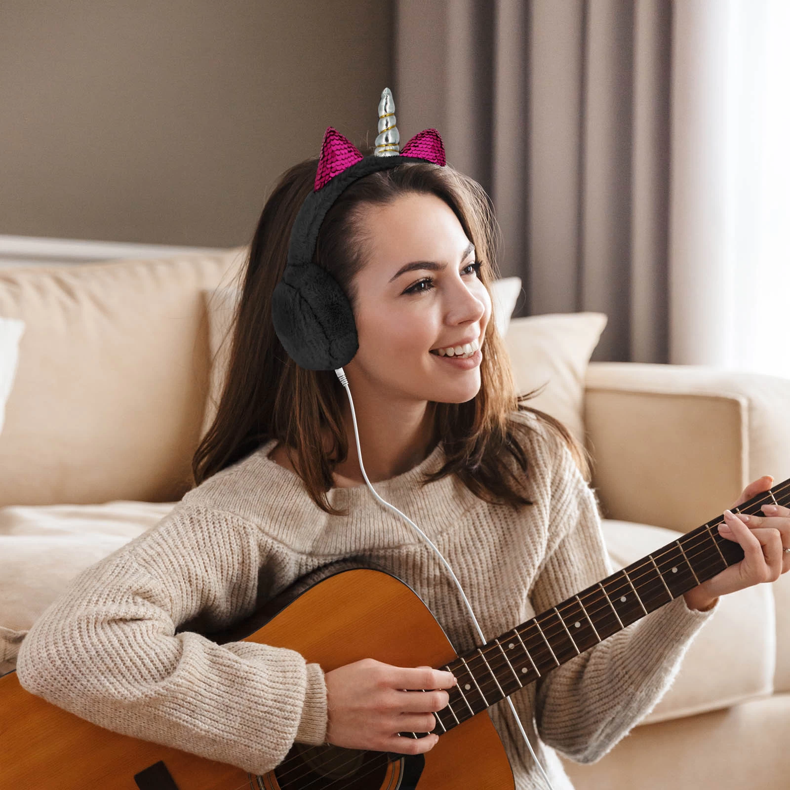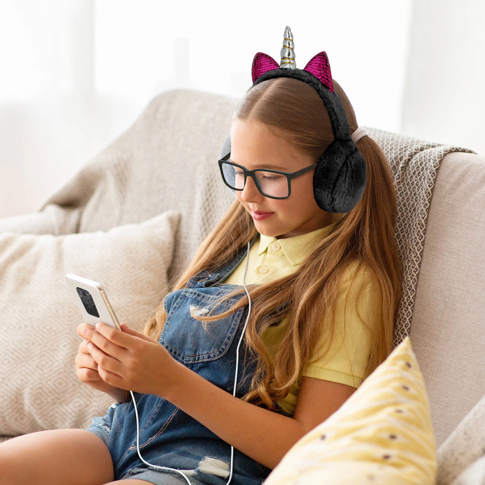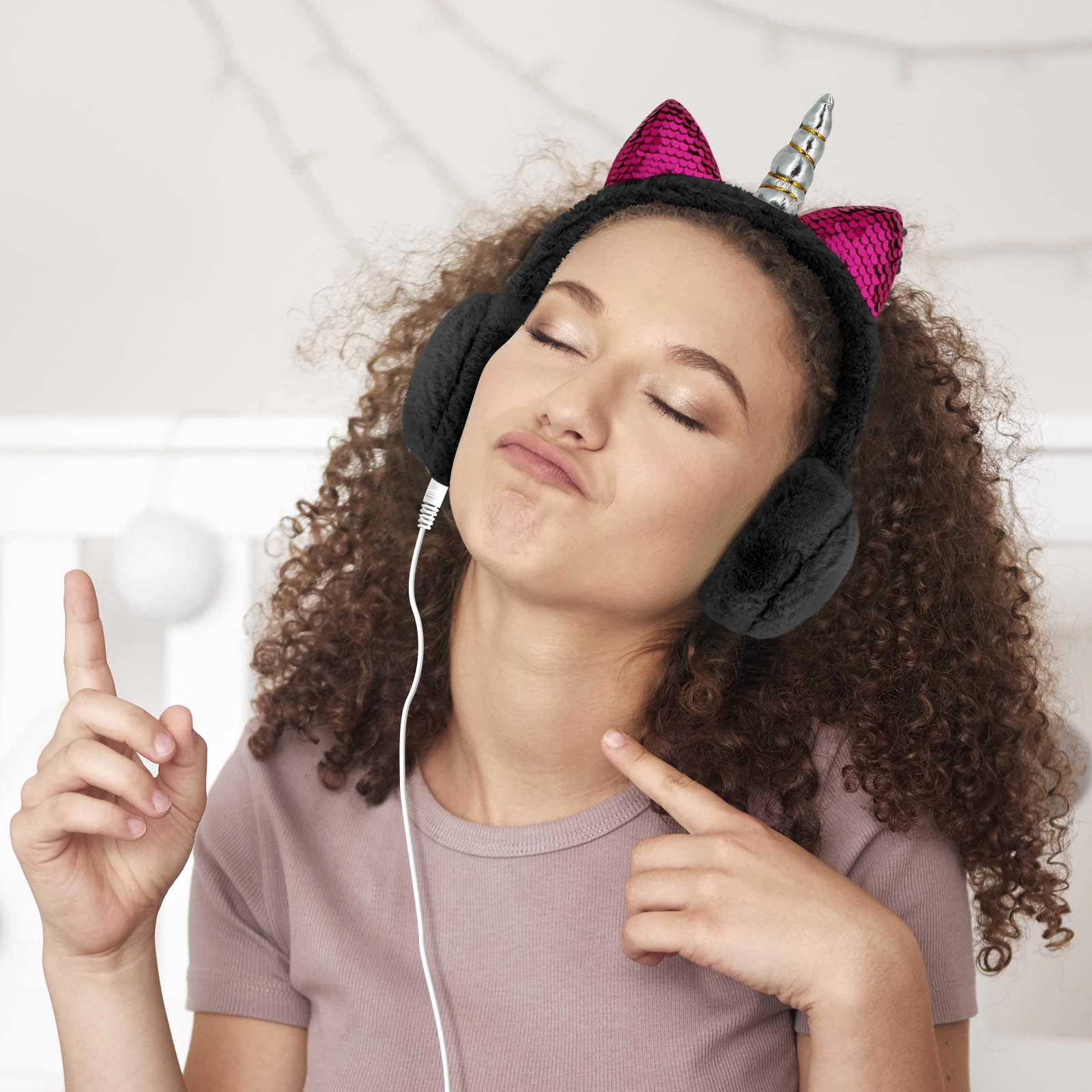 Craquez pour ce casque audio Jack 3.5mm gris, tendance et indispensable lorsque le froid s’installe. La présence d’une fourrure synthétique donne au casque la fonctionnalité de cache-oreilles. Finis donc les oreilles gelées tout en profitant de vos playlists ! La corne de licorne et les deux petites oreilles scintillantes apportent une touche magique et féerique.