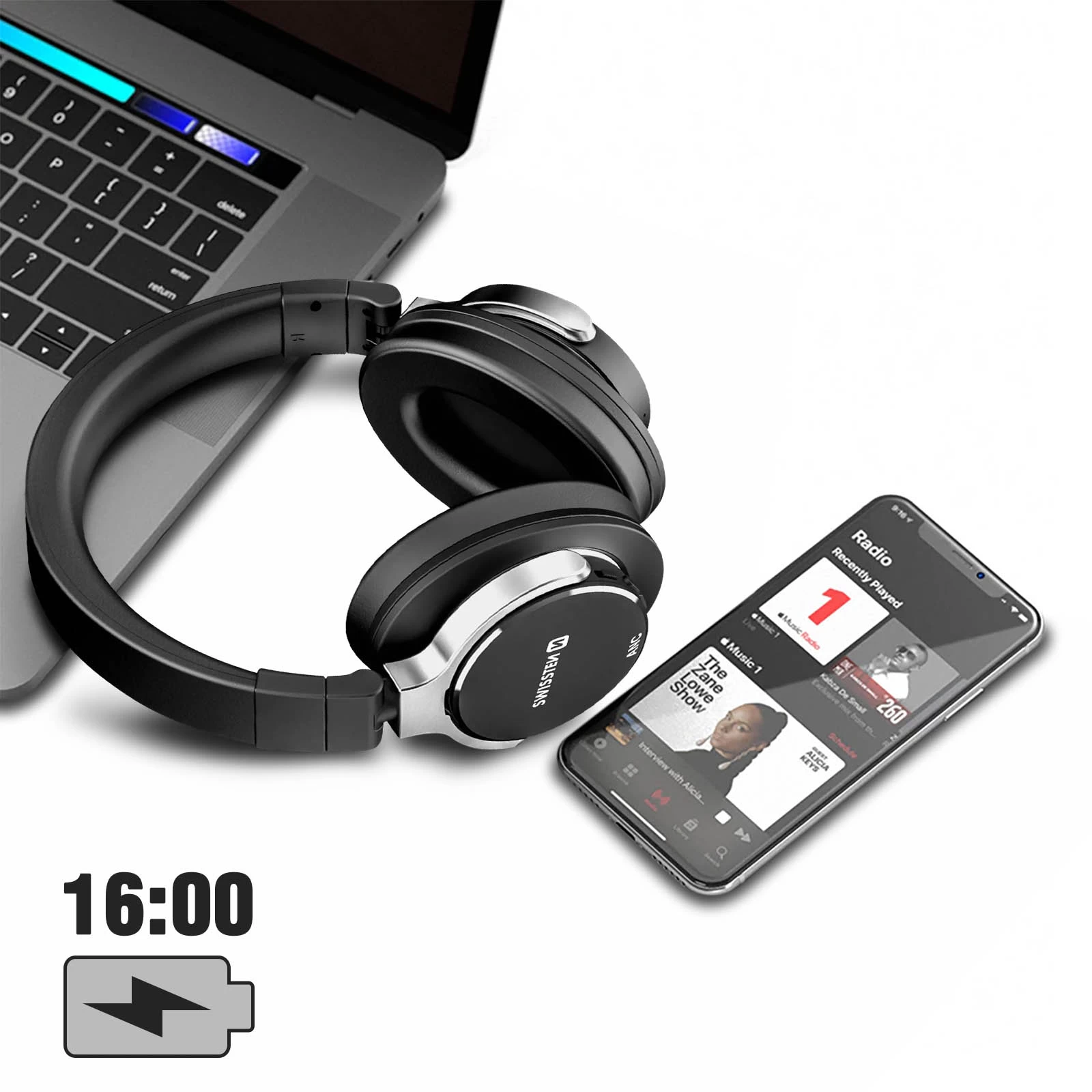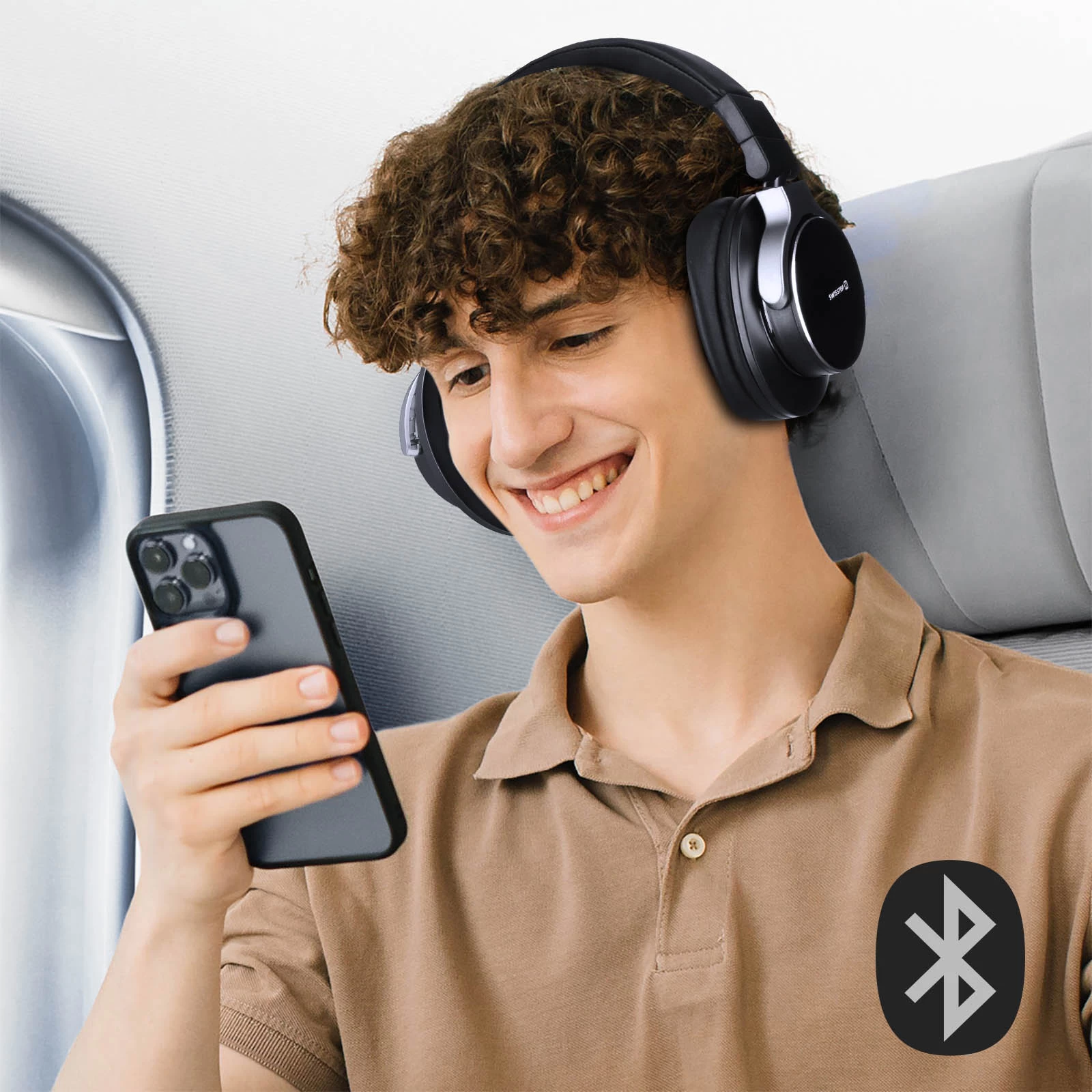 Casque Sans Fil avec Technologie Anti-Bruit, Étanche IPX3 avec Port Confortable, Swissten – Noir