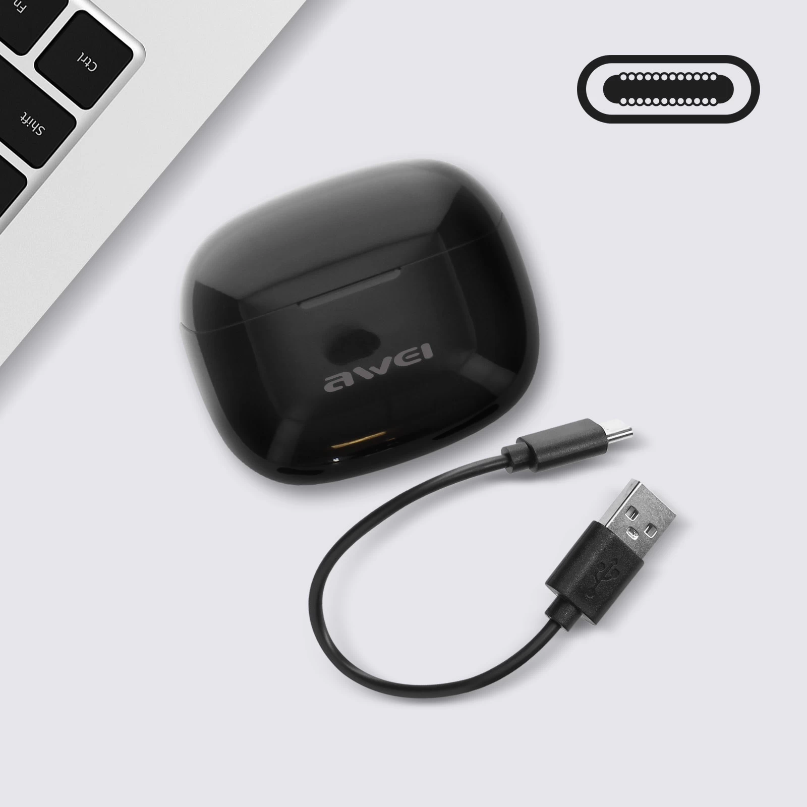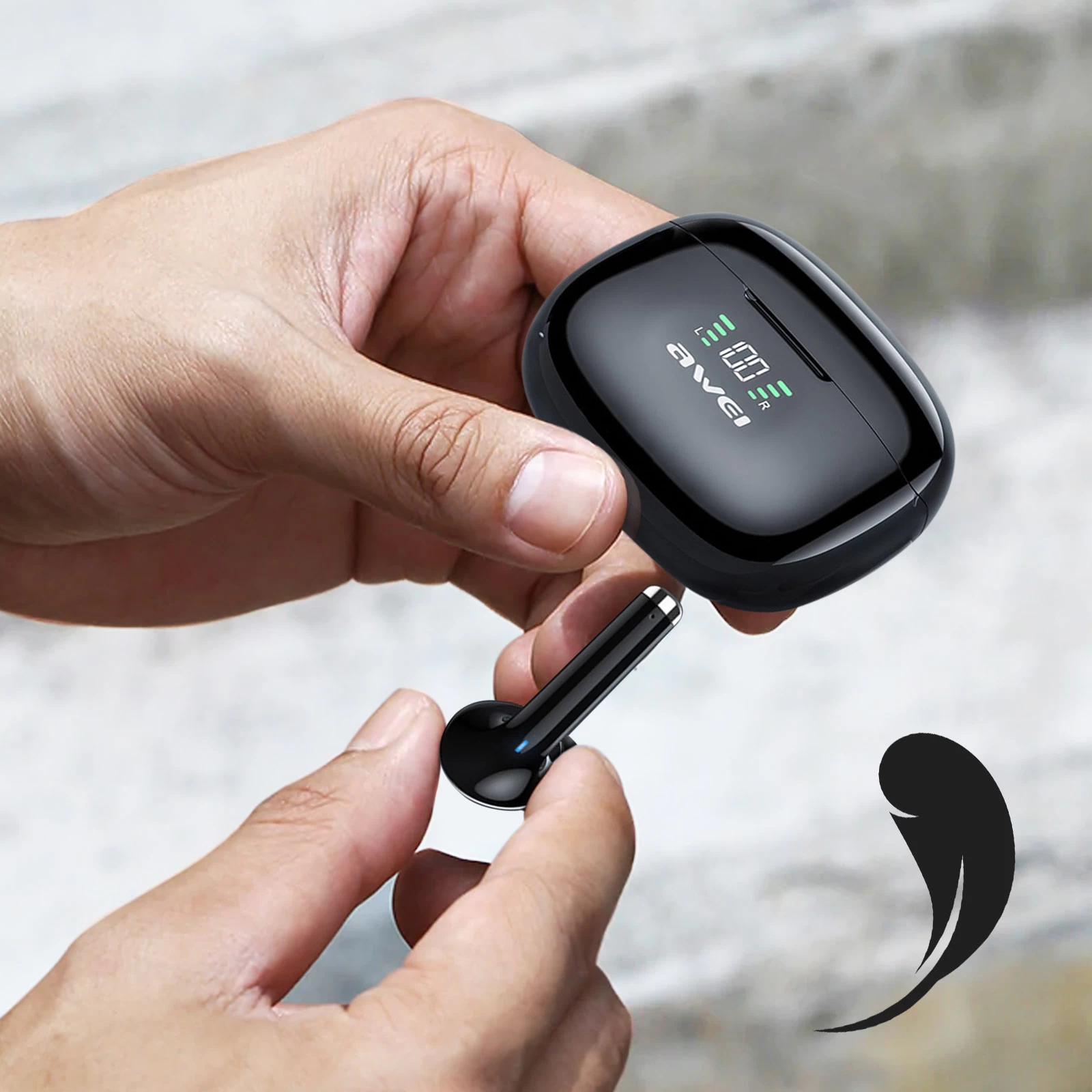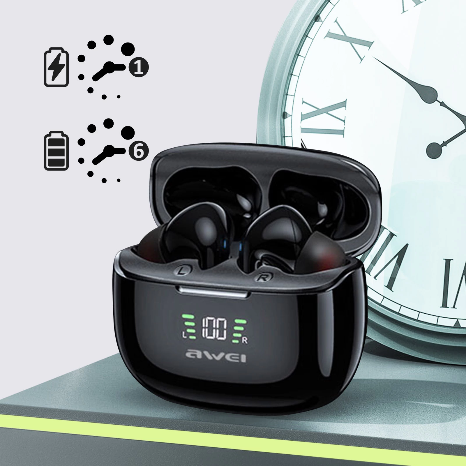 Ecouteurs sans fil Bluetooth Awei, avec indicateur LED