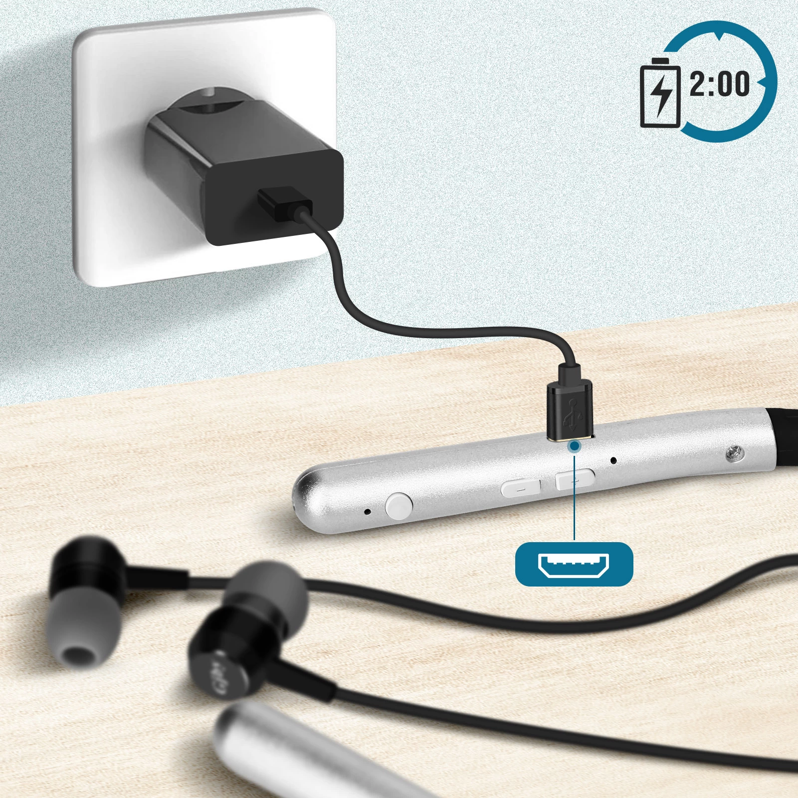 Performants, ces écouteurs sans fil Bluetooth vous permettent de profiter de vos musiques préférées jusqu’à 8 heures d’écoute en continu. Pour les remettre à plein, servez-vous du câble de charge USB vers micro-USB déjà inclus, 2 heures seulement suffiront !