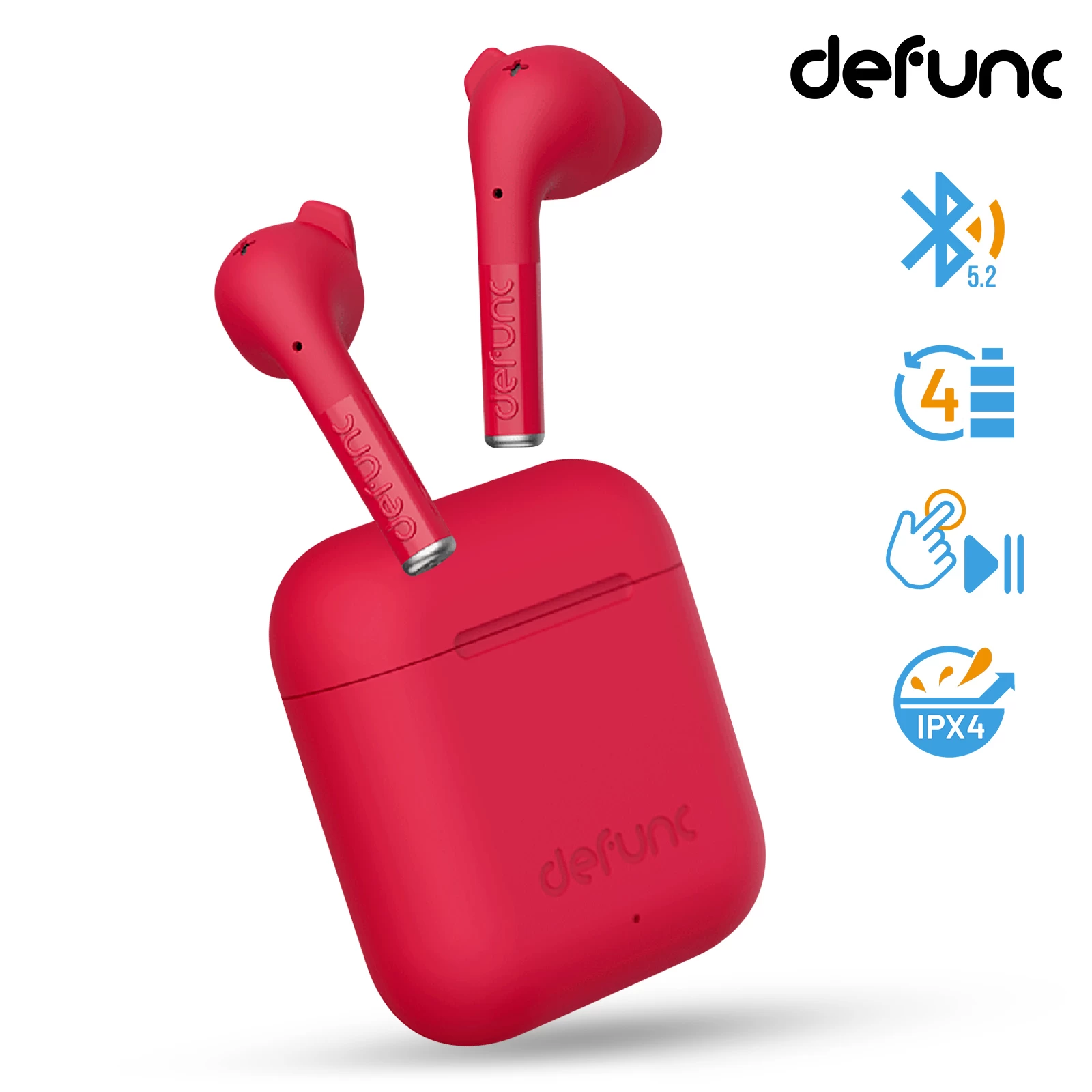 Écouteurs Bluetooth Defunc IPX4, Réducteur De Bruit Contrôle Tactile Et Boîtier De Charge – Rouge