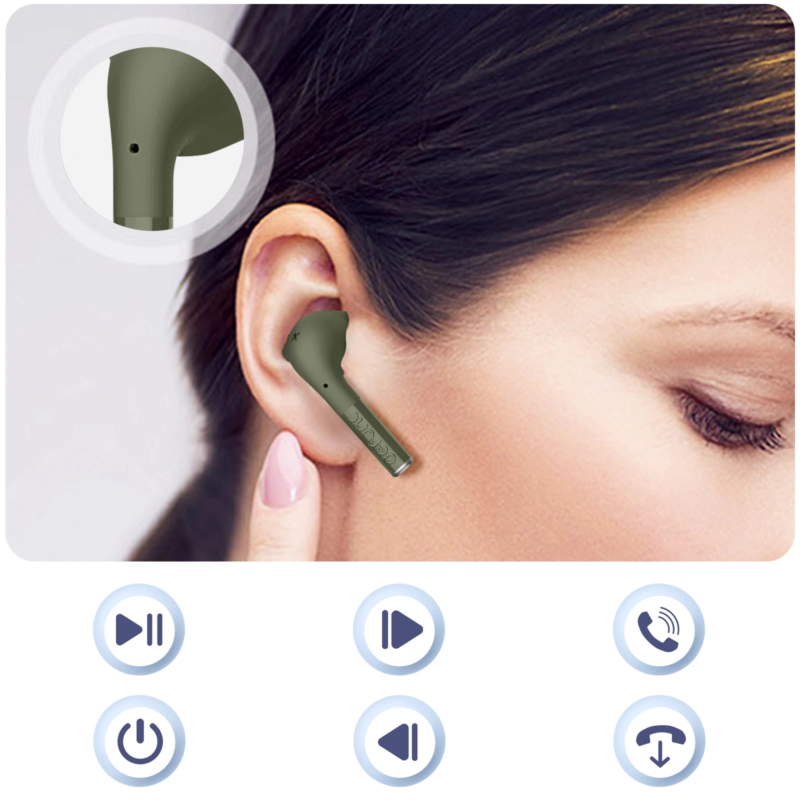Plus pratique que jamais, ces écouteurs disposent de fonctionnalités tactiles pour gérer vos musiques et vos appels en toute simplicité. Contrôlez le son directement depuis les écouteurs, ajustez le volume selon vos préférences et gérez vos appels en une simple pression.