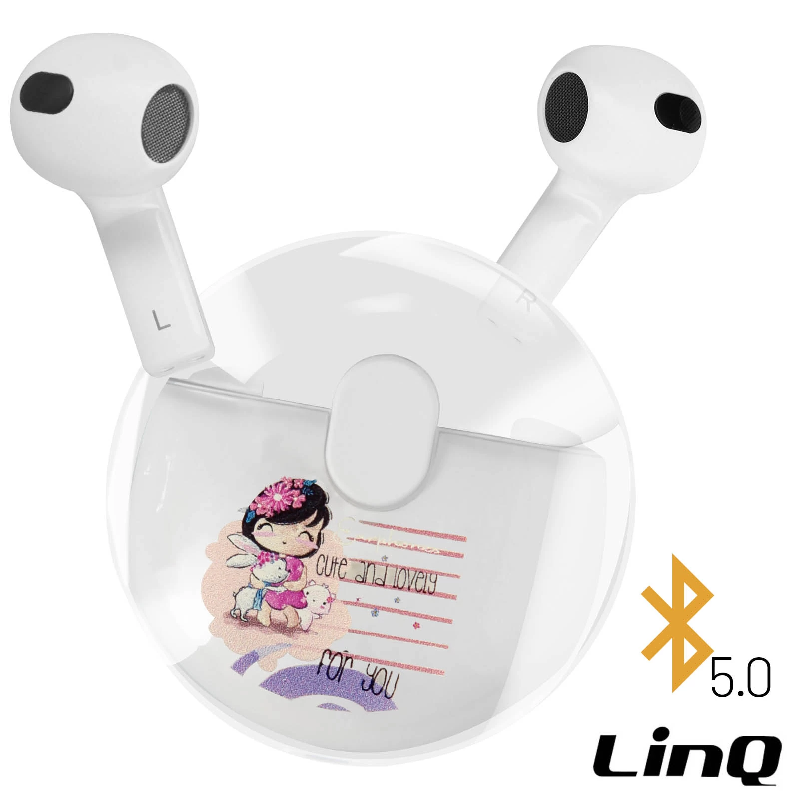 Écouteurs sans fil, boitier motif fillette, LinQ