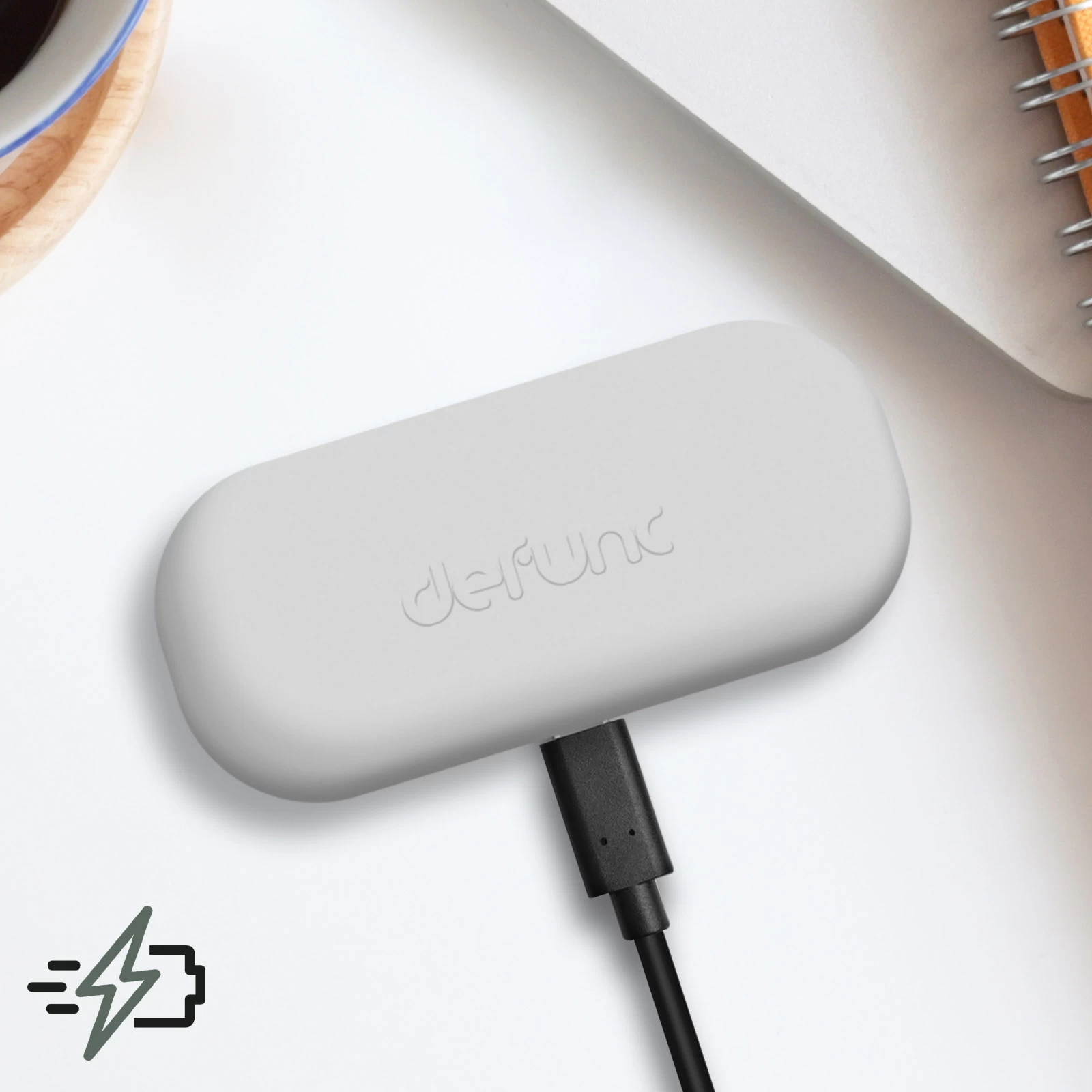 Un câble de charge USB-C est déjà inclus pour recharger rapidement le boitier et que vos écouteurs soient immédiatement prêts à l’emploi. Branchez-le tout simplement à une source d’énergie externe (ordinateur, powerbank, chargeur secteur, etc.).