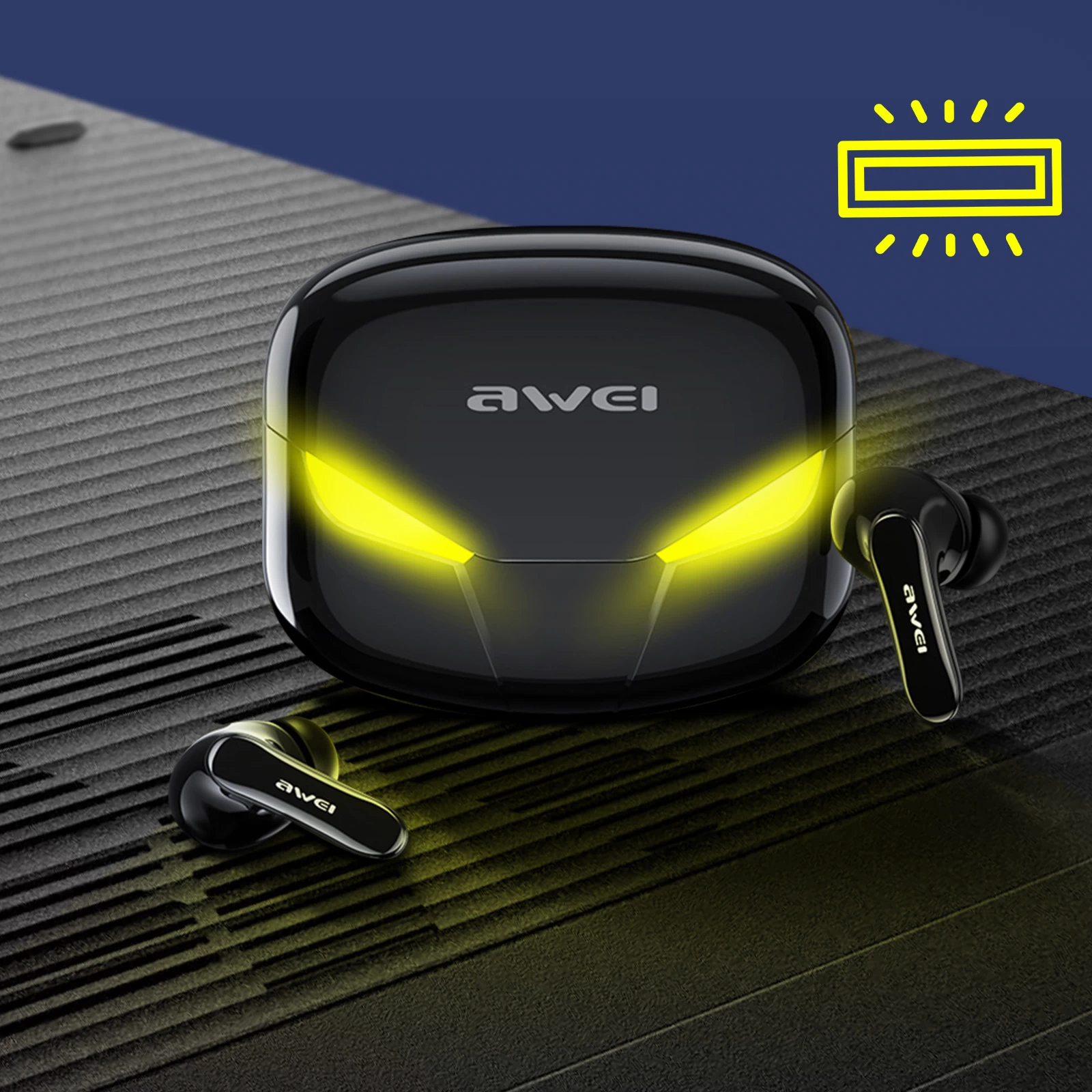 Écouteurs Sans Fil, Design LED avec Contrôle Tactile et Mode Gaming, Étanche IPX5, Awei – Noir