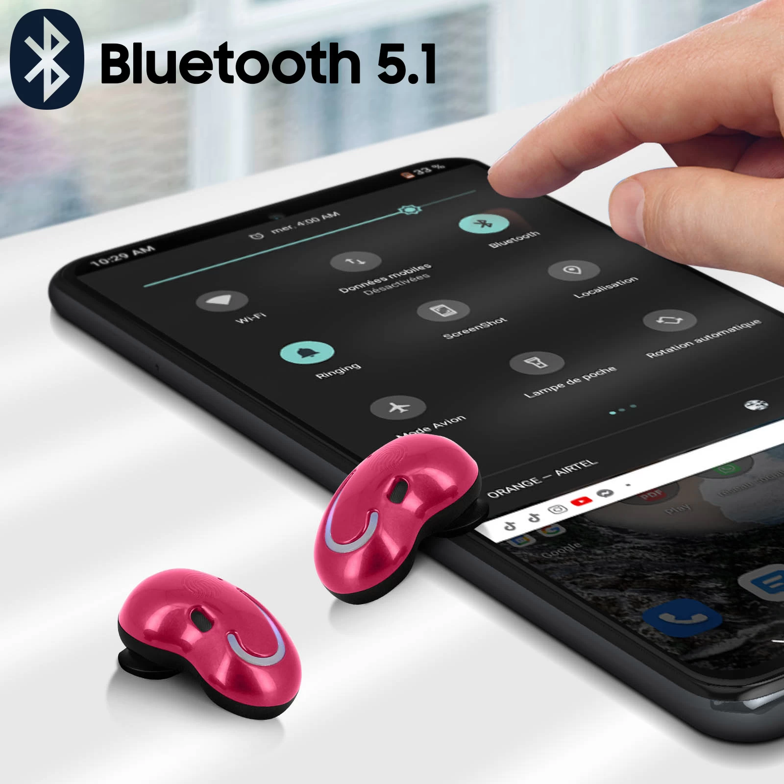 Grâce à la connexion Bluetooth 5.1, ces écouteurs vous permettent de rester connecté à votre musique et à tous les contenus de votre Appareil sans vous soucier du moindre câble. Universels, ils se connectent rapidement à tous les appareils dotés de la connectivité Bluetooth, tout en préservant leur autonomie.
