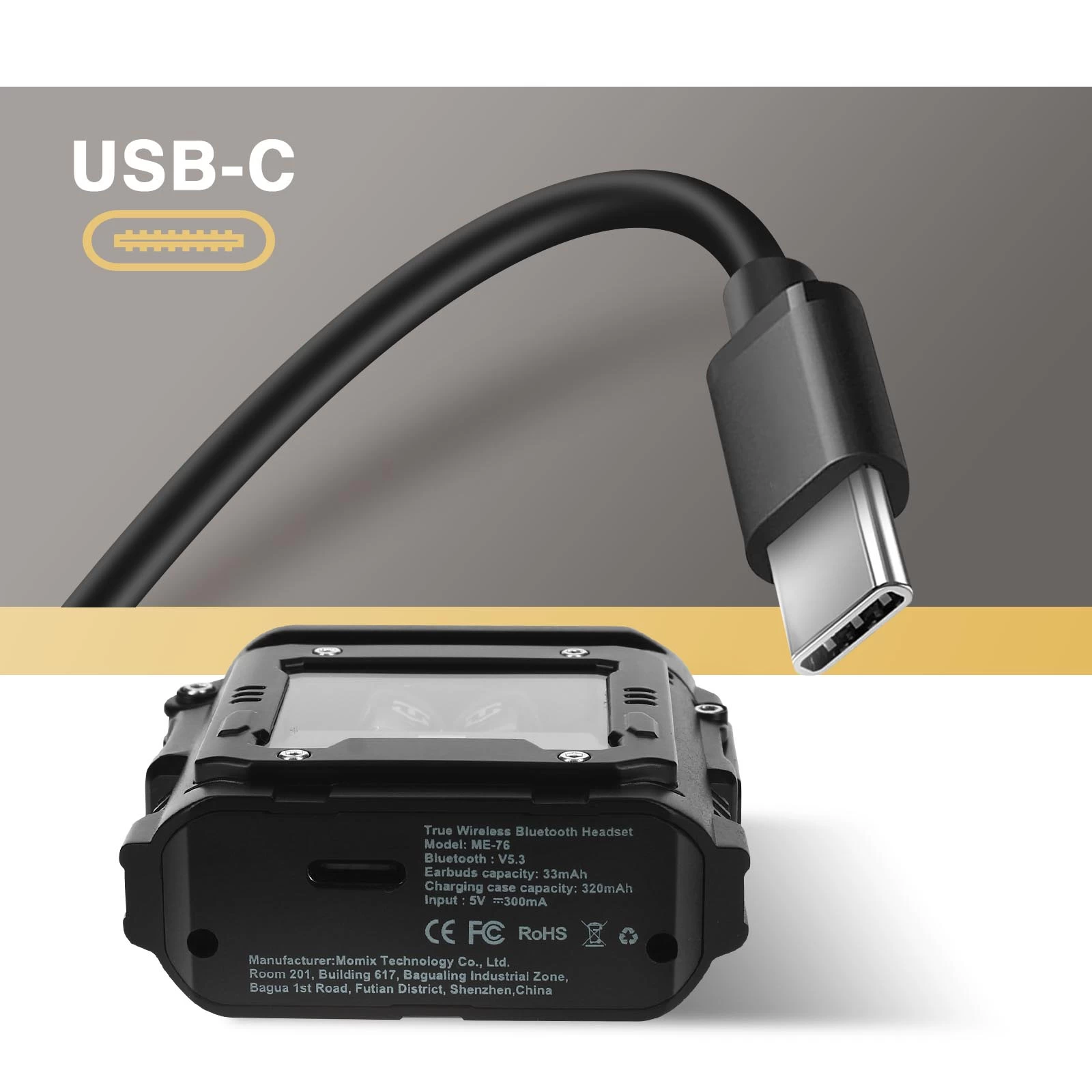 Écouteurs Bluetooth 5.3, Boîtier en Métal avec Ouverture à Clic, Étanches IPX5, Tactical StrikePods – Noir