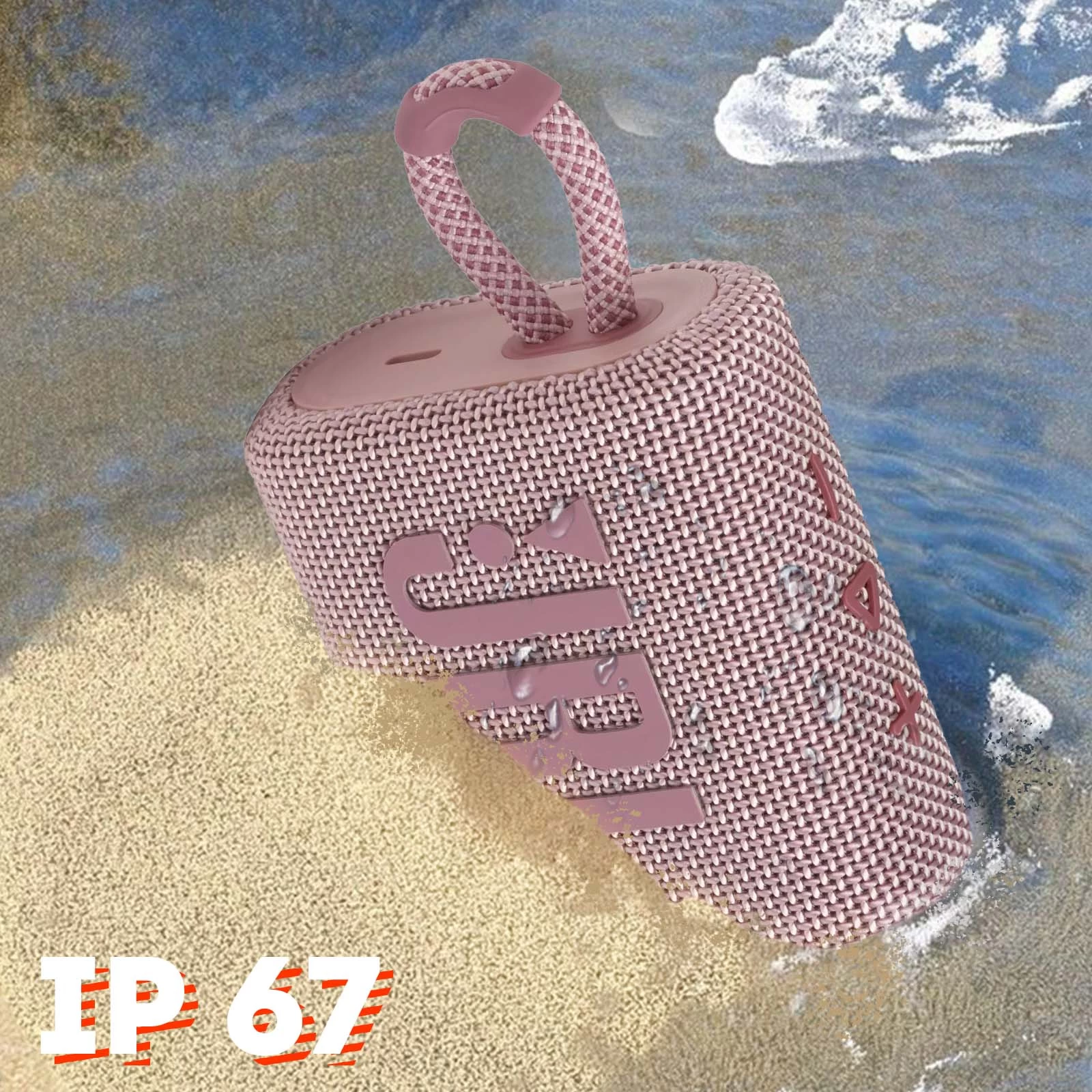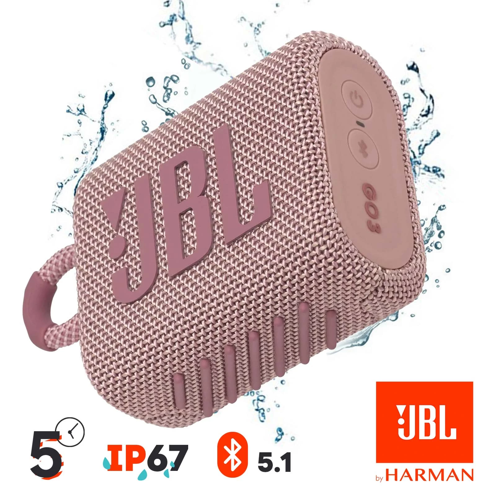 En extérieur, dans la piscine, peu importe le temps : l’enceinte JBL Go 3 vous accompagnera et vous fera plaisir. Étanche et résistante, elle est normée IP67. Elle sera ainsi protégée des chocs, des éclaboussures, de la poussière et de l’eau, ce qui vous permettra de profiter de votre musique dans toutes les conditions.