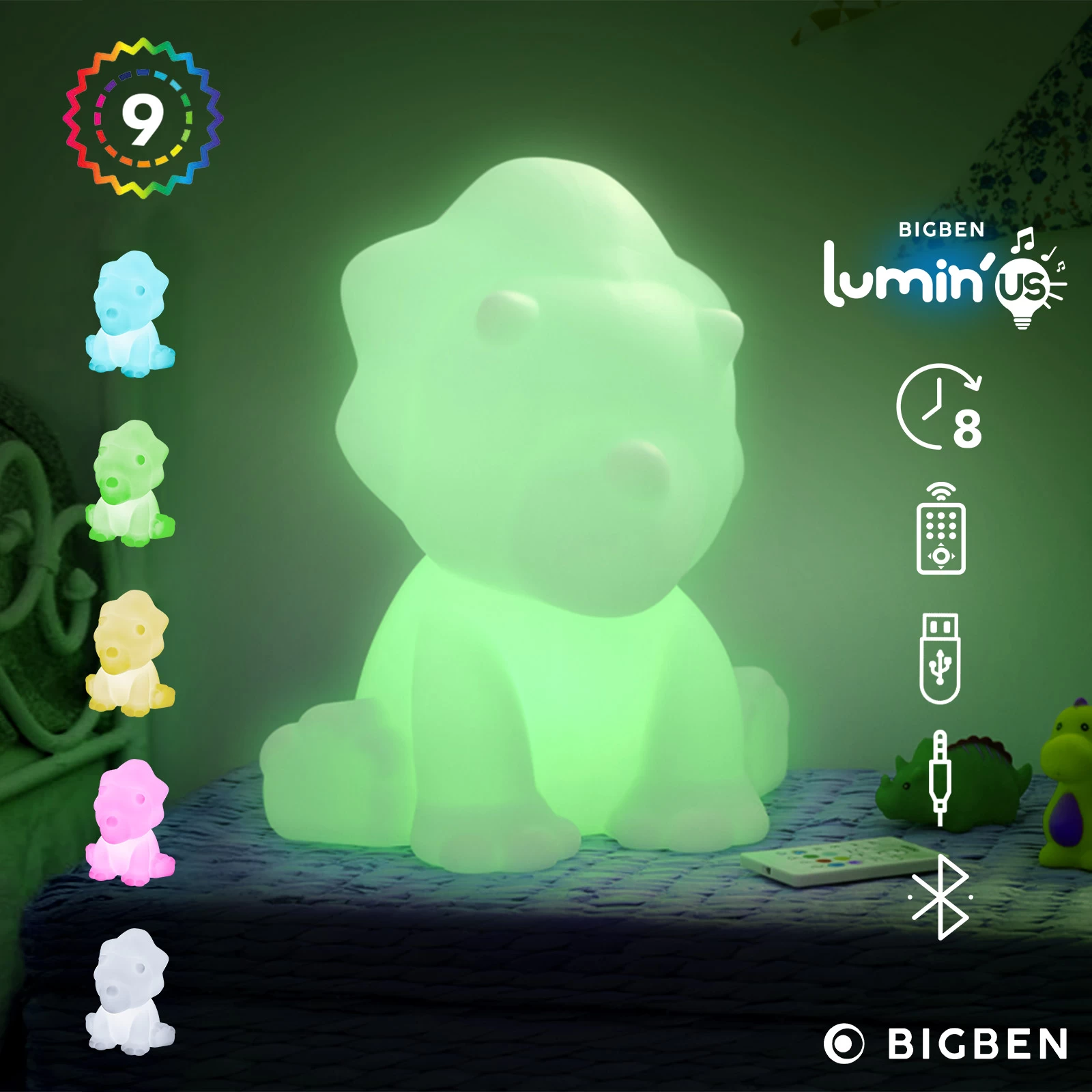Apportez une touche originale à votre intérieur avec cette enceinte Bluetooth lumineuse de Bigben. En plus de diffuser votre musique préférée, elle peut être utilisée comme veilleuse ou lumière décorative. Elle affiche un design adorable et sophistiqué avec sa forme de dinosaure. Elle s’intègre naturellement dans la décoration de la chambre ou salon.