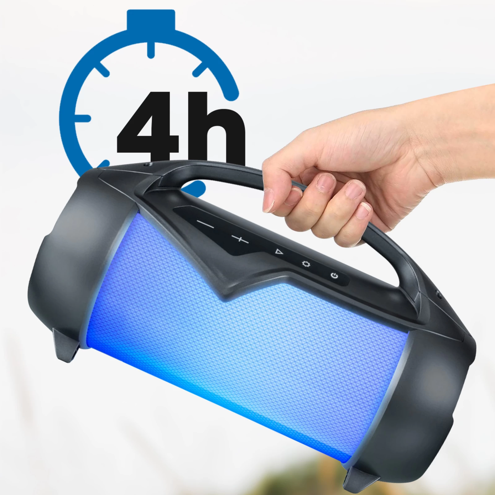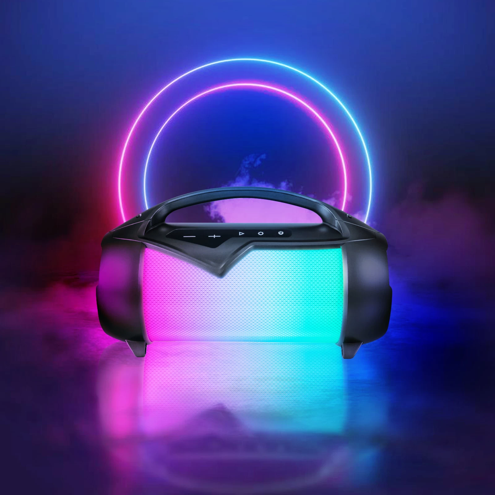 Utilisez cette enceinte Bluetooth lumineuse pour émerveiller votre écoute où que vous soyez. Ses effets lumineux éblouissants apportent une ambiance festive et riche en couleur afin de dynamiser vos fêtes et de maximiser le plaisir.