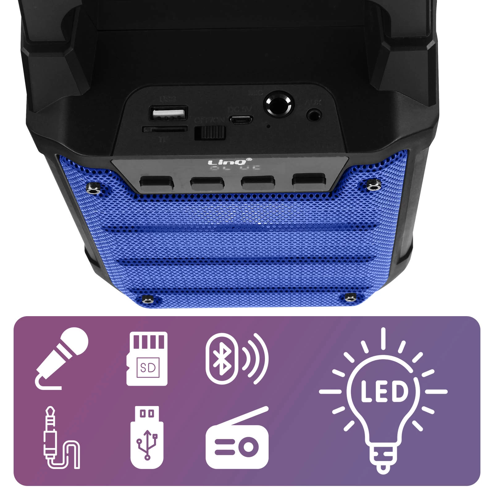 Enceinte lumineuse Bluetooth, Compatible Micro, LinQ – Bleu