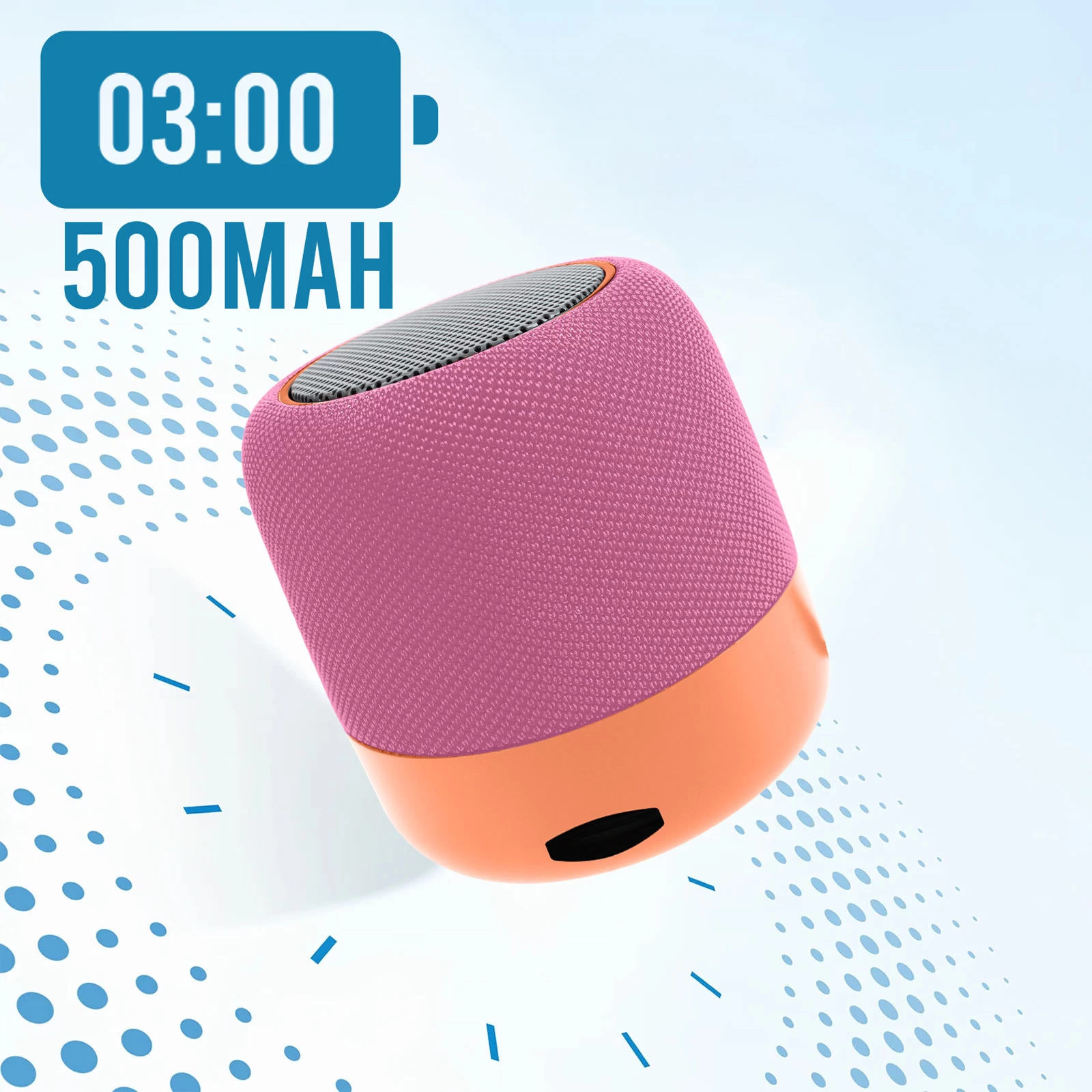 Dotée d’une batterie de 500mAh, cette enceinte audio vous offre une autonomie de 3 heures. Dans le jardin, en promenade comme en randonnée, elle saura vous tenir compagnie. Une fois à plat, vous pouvez la recharger à l’aide du câble USB-C inclus.