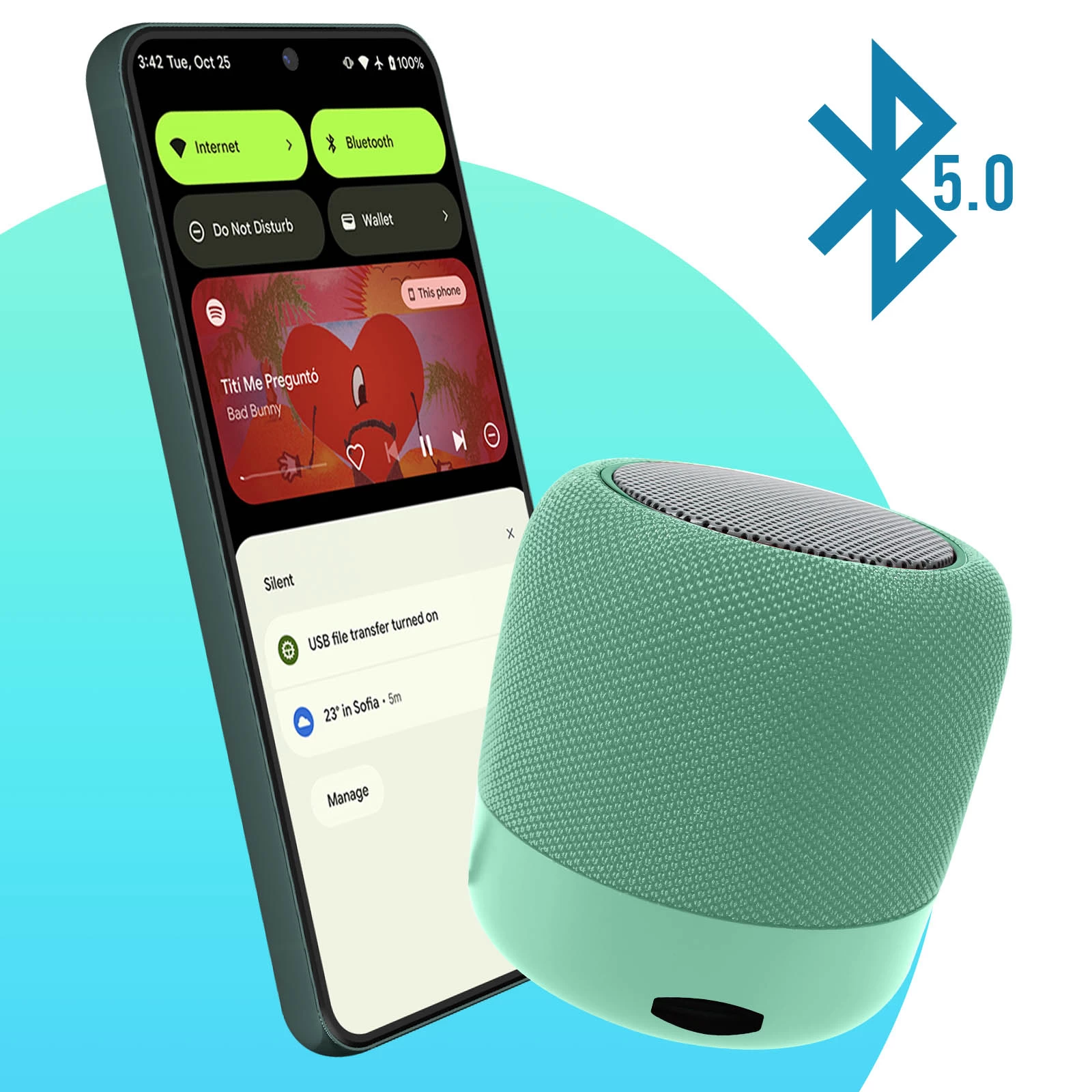 Mini Enceinte Bluetooth 5.0, Radio FM Et Micro Avec Dragonne, WSY01 – Vert