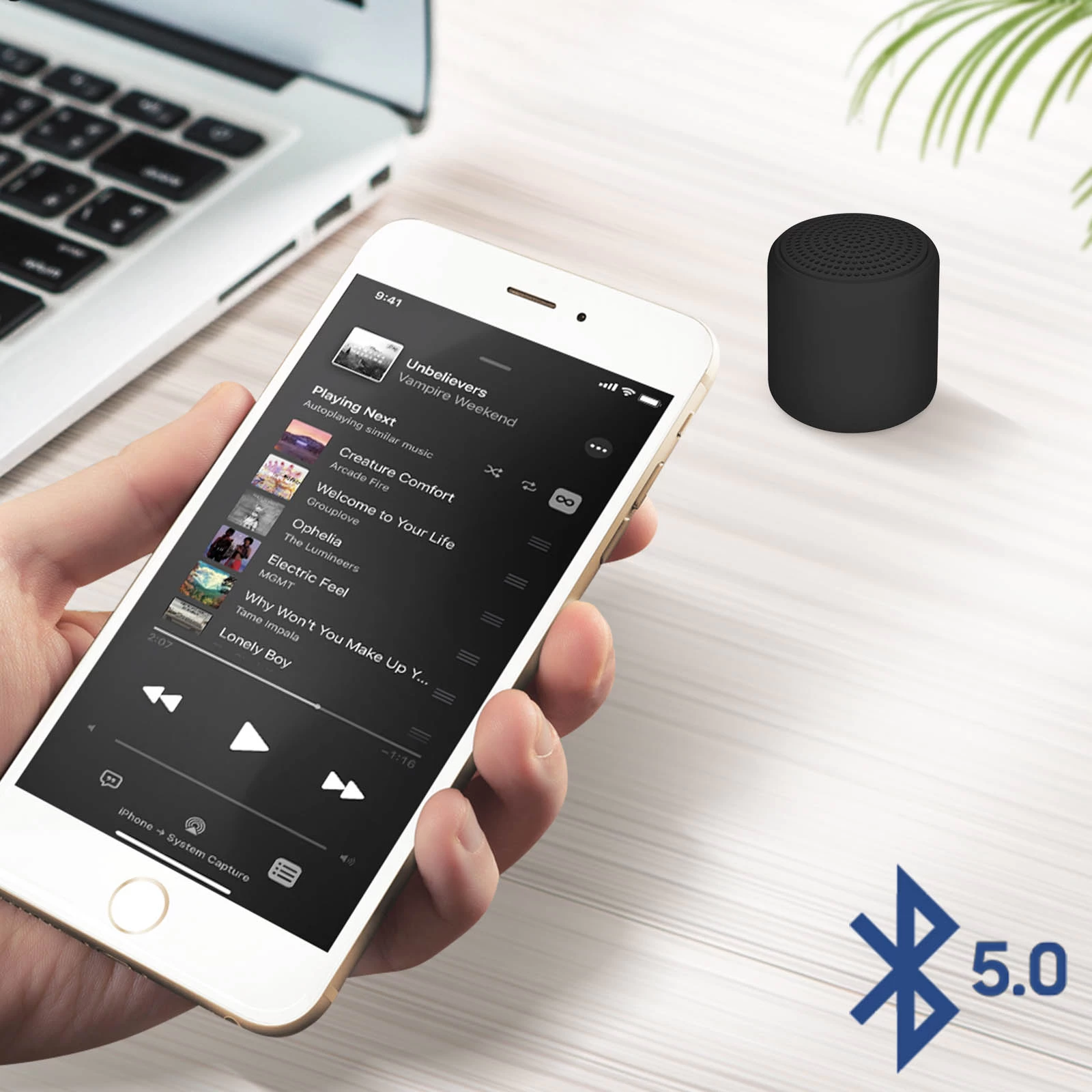Cette mini enceinte est dotée de la fonctionnalité Bluetooth 5.0, qui permet une connexion sans fil et rapide avec votre Appareil. Pratique et très simple d’utilisation, avec une portée allant jusqu’à 10m. Elle vous offre une totale liberté de mouvement. Dites alors adieu aux encombrements de fils et profitez pleinement de vos morceaux préférés en tout instant.