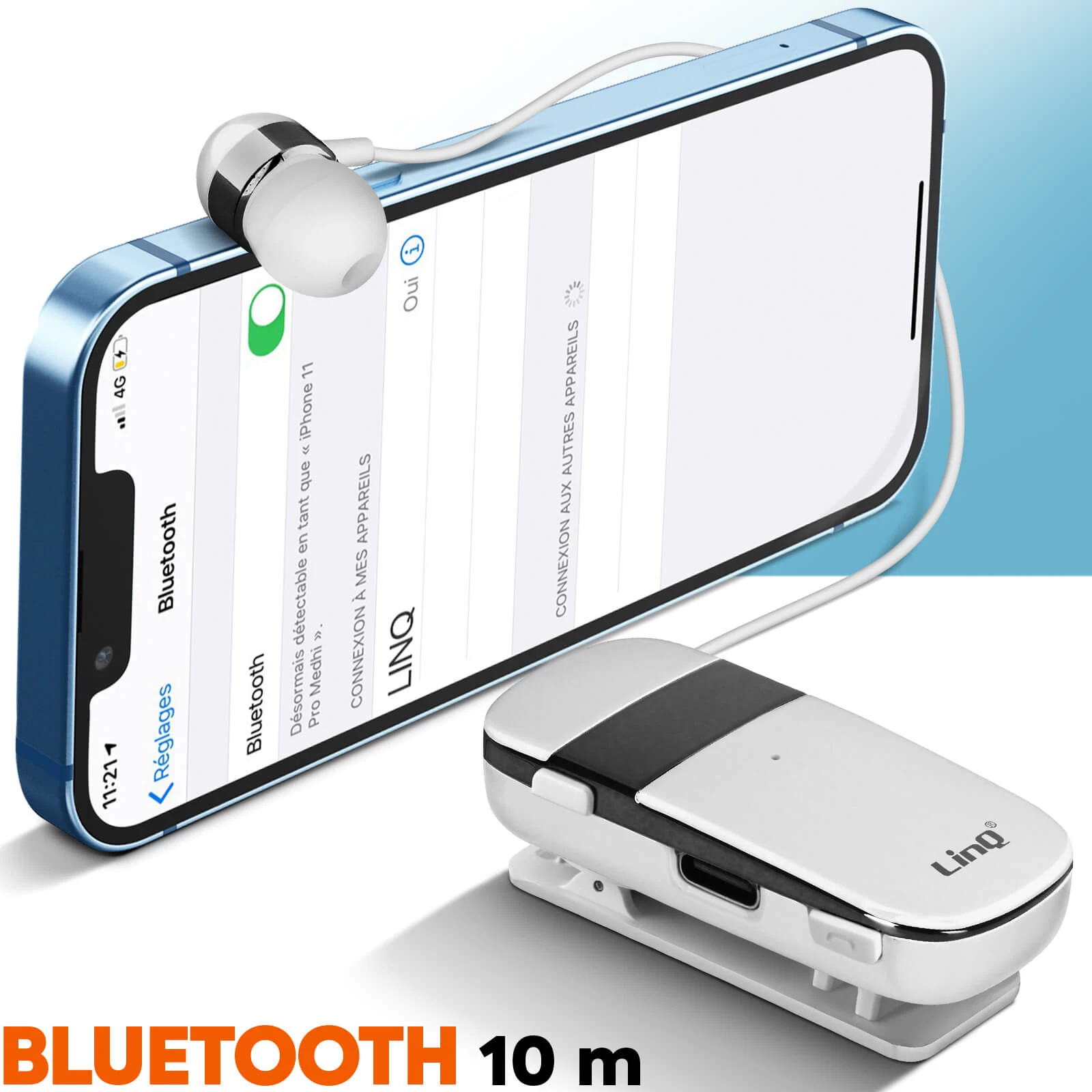 L’oreillette est équipée de la technologie Bluetooth, qui permet une connexion sans fil à votre appareil compatible. Cette technologie assure une grande fluidité de transmission audio pour une expérience d’utilisation sans interruption. De plus, avec une portée de 10 mètres, vous pouvez vous déplacer librement sans craindre de perdre la connexion avec votre smartphone.